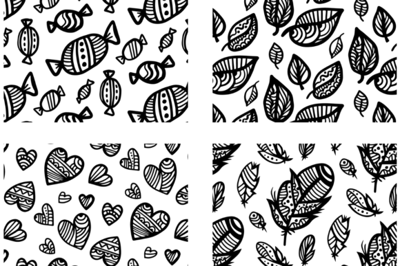 Toffees Pattern, Bold leaves, Hearts, Feathers, Leaf, Popsicle, Bigleaf, Paisley Motif, Drop Shape, and Betel Leaf.